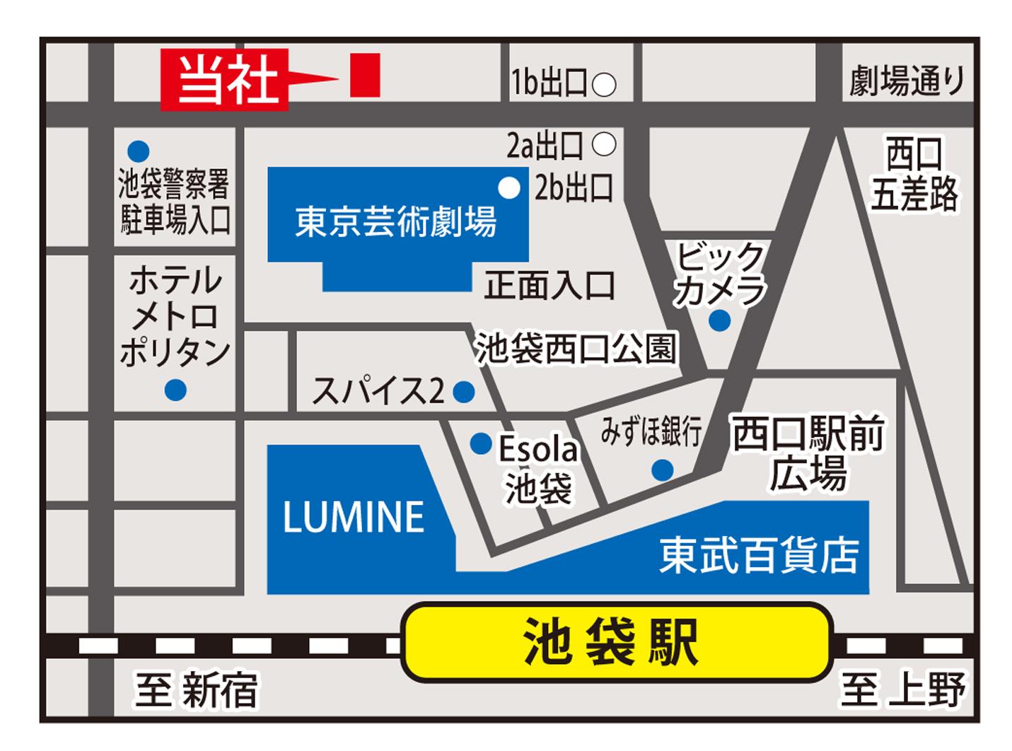 アクセス | 東京メトロ副都心線 池袋駅 徒歩1分 JR山手線 池袋駅 徒歩2分 ・東京メトロ副都心線『池袋駅』1b出口より徒歩1分 ・JR『池袋駅』西口より徒歩2分 |